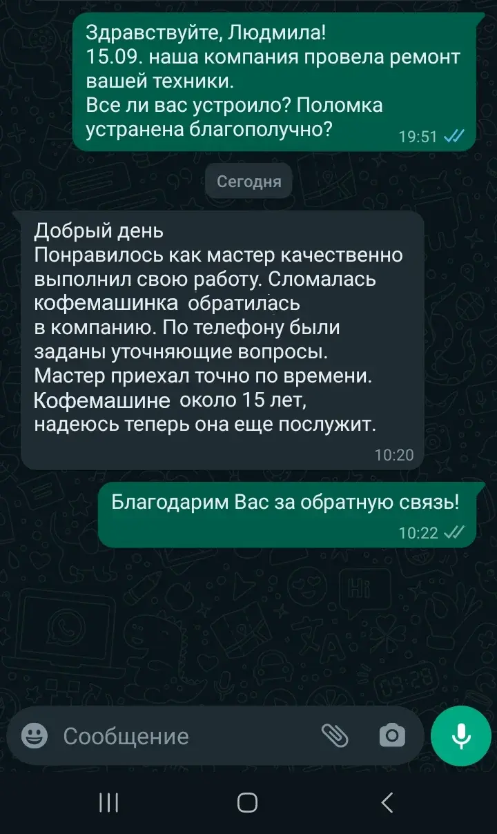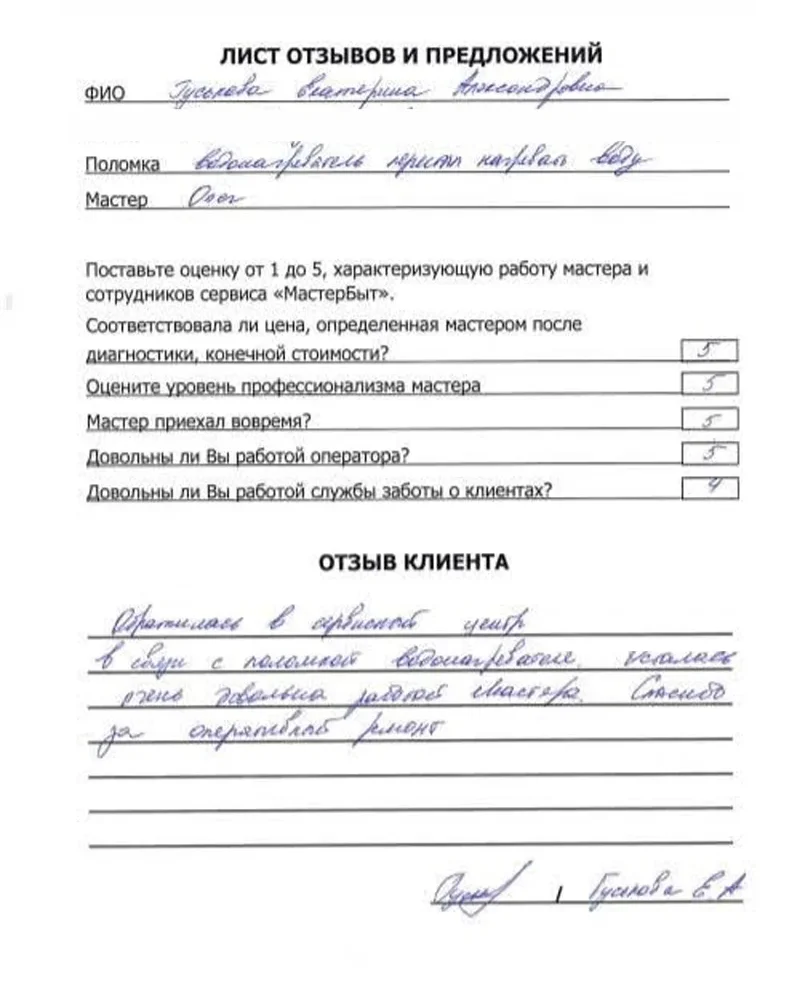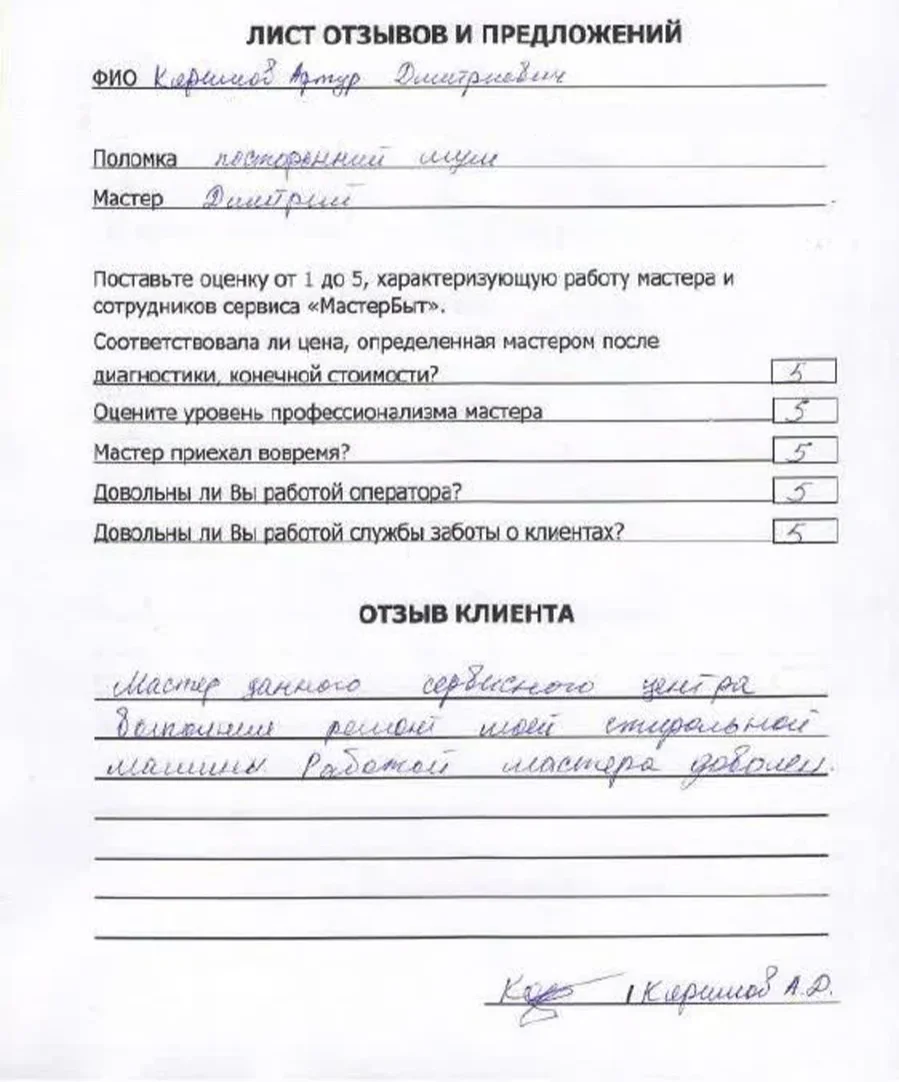 Мы уточним детали и согласуем удобное время для визита мастера